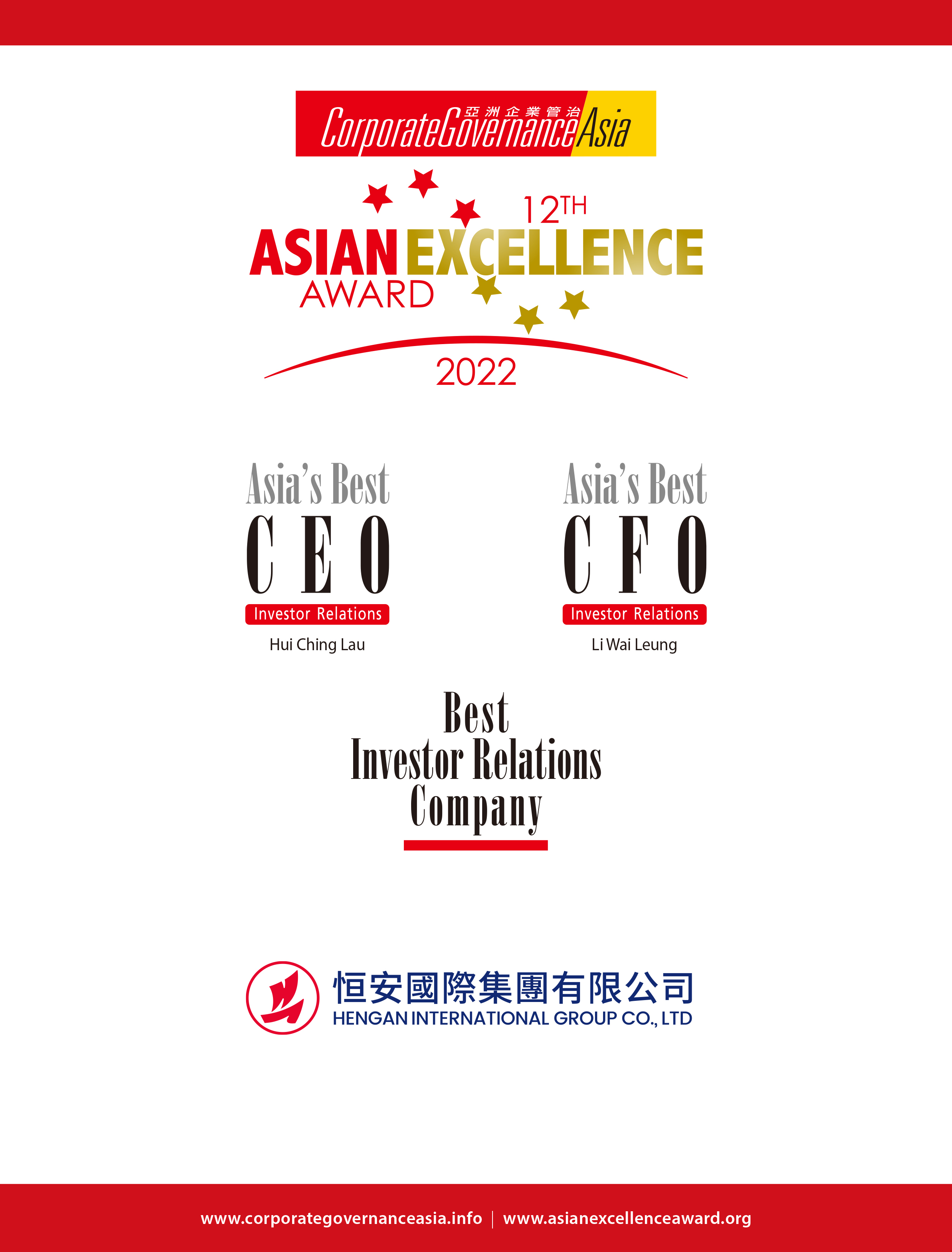 时刻: 2023-12-07近日,《亚洲企业管治》杂志颁发“第十二届亚洲卓越企业大奖”,彩神v8首页荣获三项大奖:恒安国际集团有限公司执行董事兼行政总裁许清流荣获该杂志颁发“亚太区最佳CEO奖”,执行董事兼财务总监李伟樑获颁发“亚太区最佳CFO奖”,恒安国际凭借在企业管治、投资者关系、企业社会责任等多方面的综合出色表现,同时荣获“最佳投资者关系企业”。